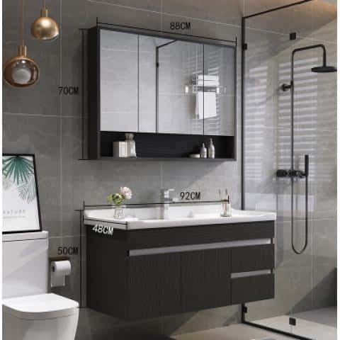 岩板轻奢定制浴室柜组合它墅岩石一体套装简约现代卫生...