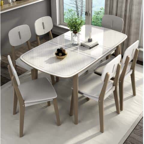 双虎家私 餐桌椅组合现代简约小户型4人小户型家用伸...