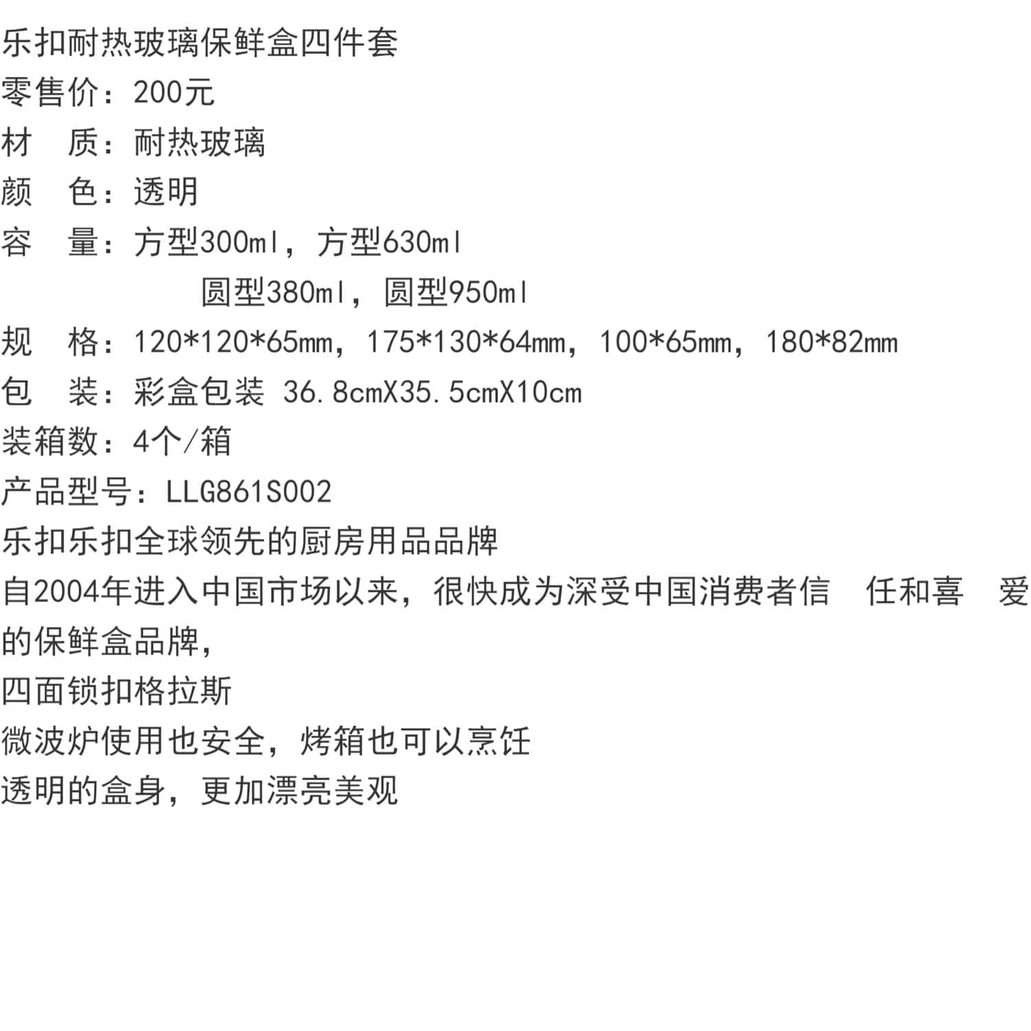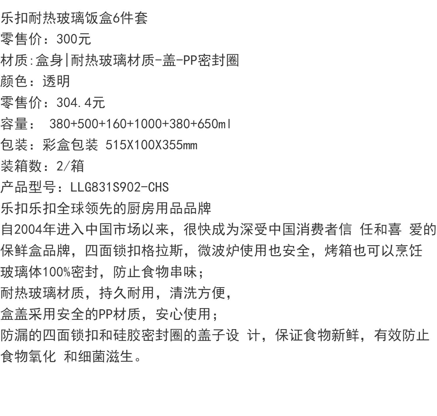 | 包装清单 | 保鲜盒x5 | |